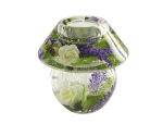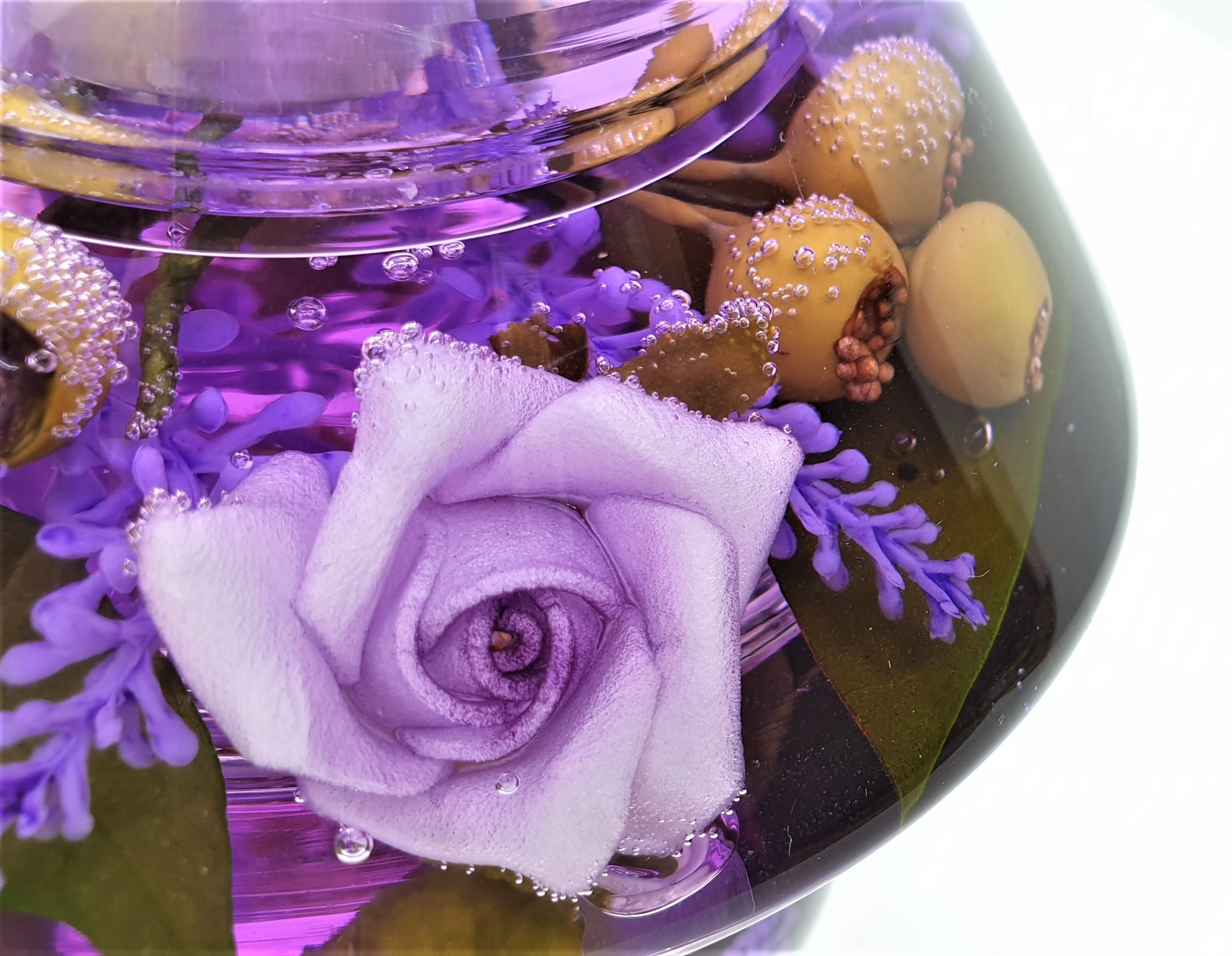 U opsežnom ručnom radu kombiniramo prirodne  i visokokvalitetne umjetne  ukrase u ručno puhane svijećnjake.